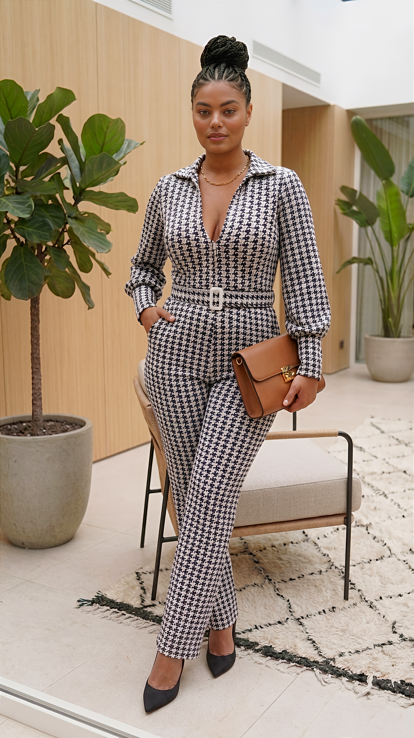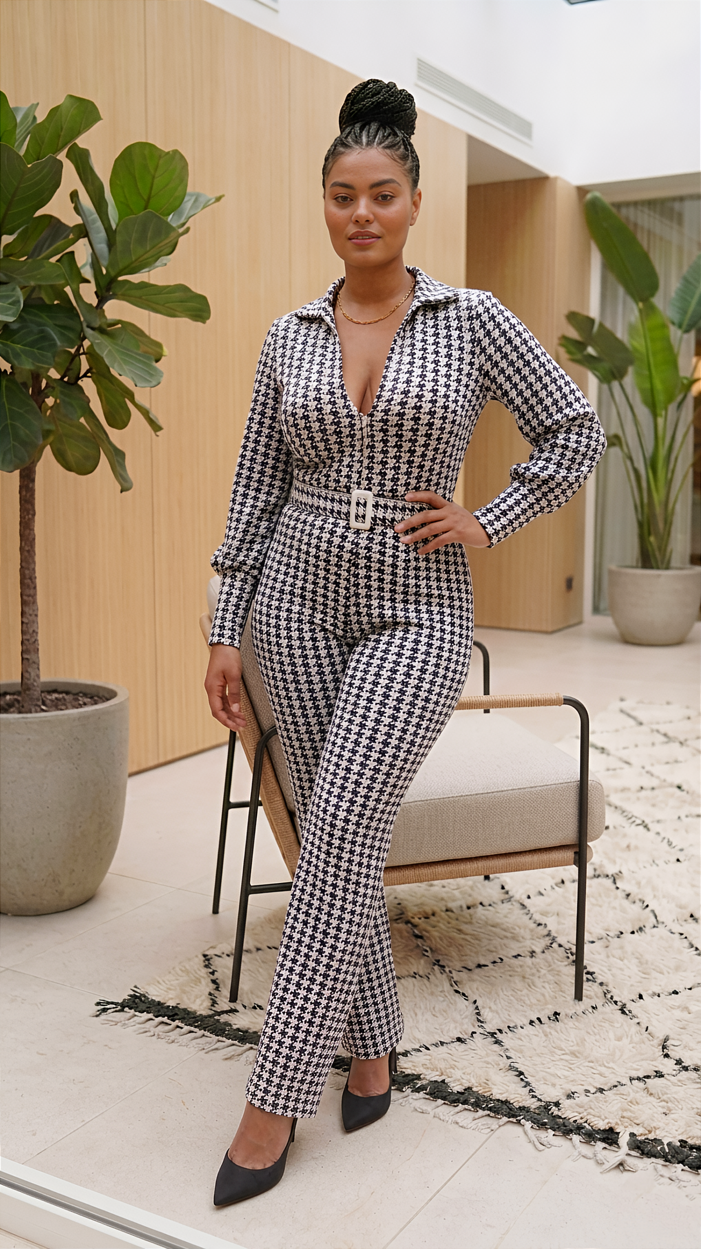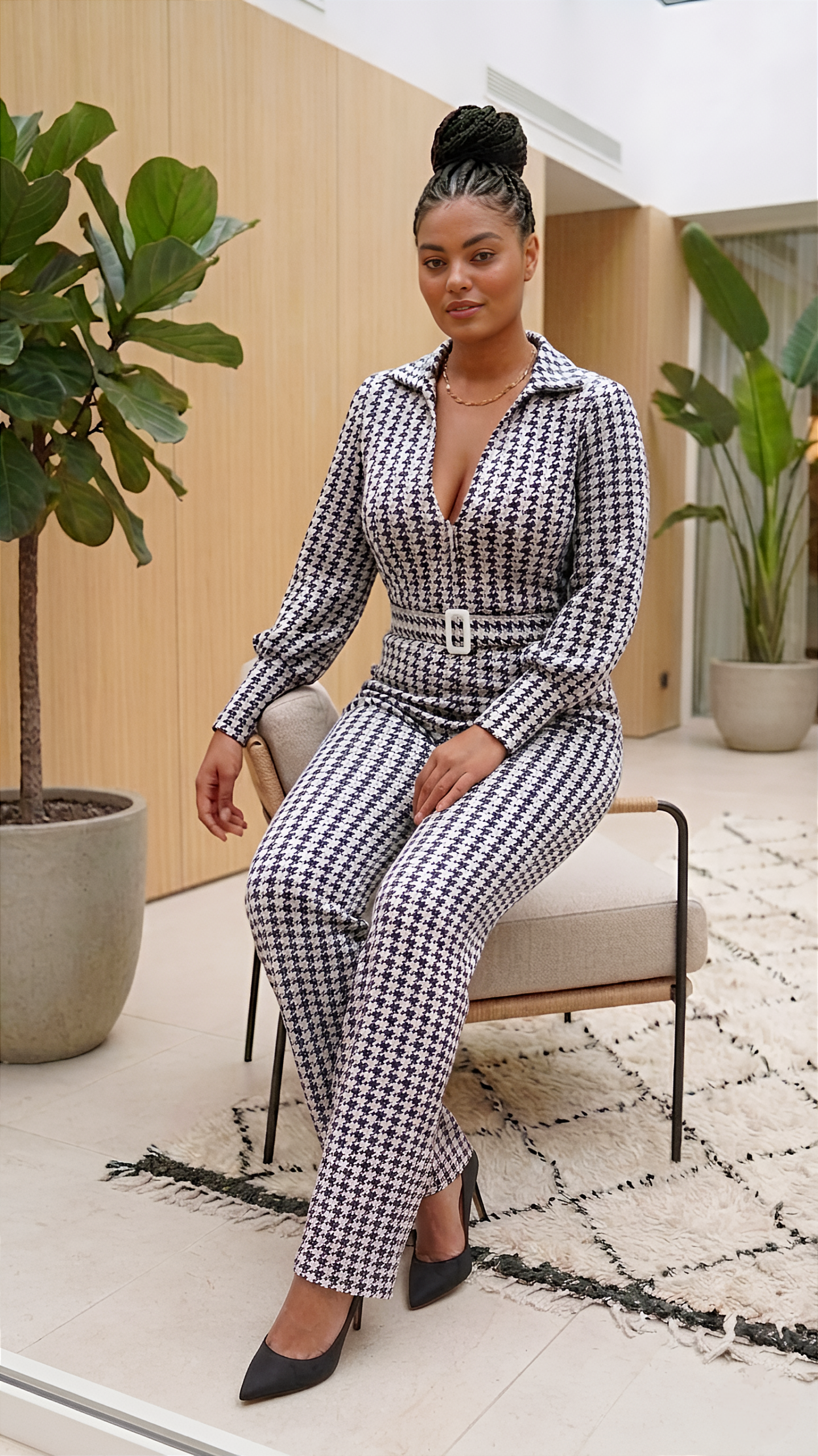 Combinaison pied-de poule noire